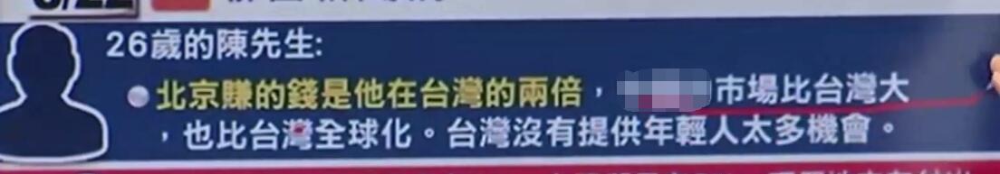 与此同时,也有不少台湾媒体对人才流失痛心疾首,更在分析台湾青年人才为何纷纷赴大陆发展时举例表示,不少年轻人都认为在大陆不管是环境就业还是薪资待遇,都比台湾要好太多。