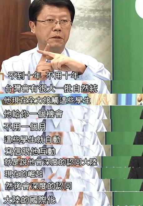 国民党中常委谢龙介对此更表示:不用10年,台湾会有一大批自然统,因为这些与大陆接触过的台湾学生会愈发深刻的认同大陆的崛起以及大陆的国际化。