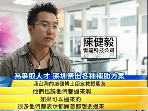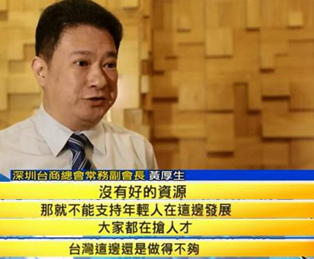 深圳台商总会常务副会长黄厚生更直言,台湾没有好的资源自然不能支持年轻人,尤其是台湾人才的发展。