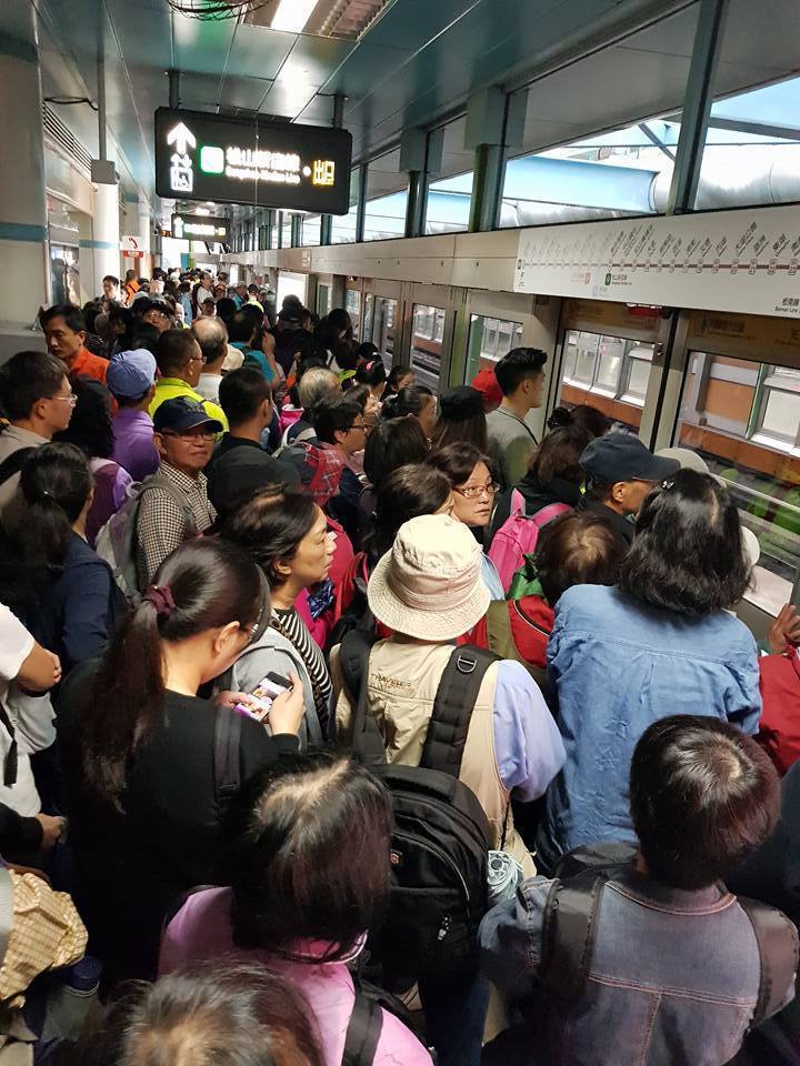 一早文湖线被参加健行民众塞爆。(图源:联合新闻网)