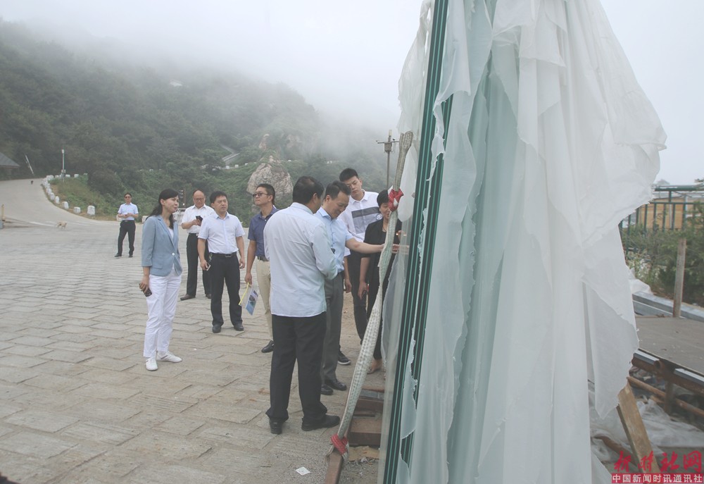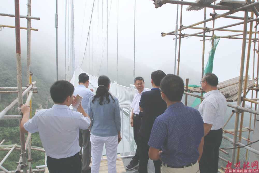领导们对正在建设的祥云玻璃栈桥及用材进行了细致的考察。