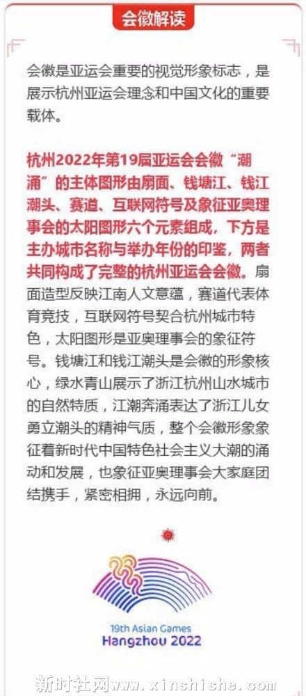 [新时社记者 趙志丹]从2018年1月29日启动征集,到2018年8月6日正式发布;从海内外征集、专家评审,到商标和大数据查重、著作权登记保护,再到修改深化、评议沟通、审批允准……最终,作品“潮涌”正式成为杭州2022年第19届亚运会会徽。