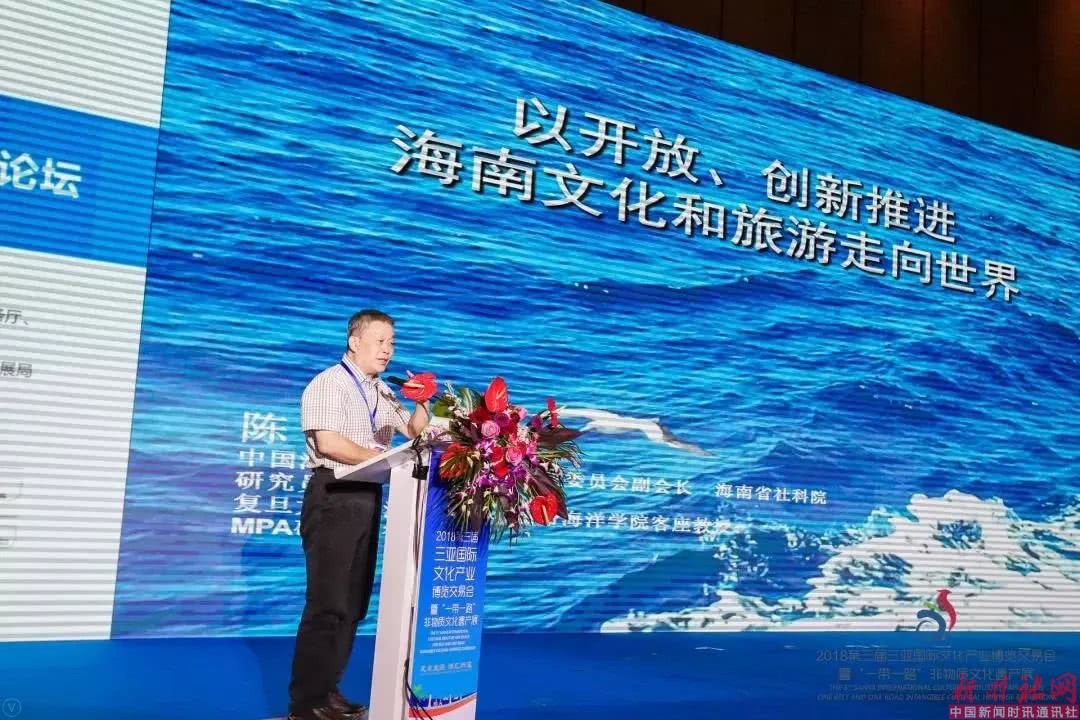 中国海洋学会海洋旅游专业委员会副会长陈耀先生发表了题为“如何推进中国海南的文化和旅游与国际接轨”的演讲,他认为,推进海南文化和旅游走向世界应突出海南文化特色,把握自贸区自贸港新机遇,以开放、创新推进海南文化和旅游走向世界。