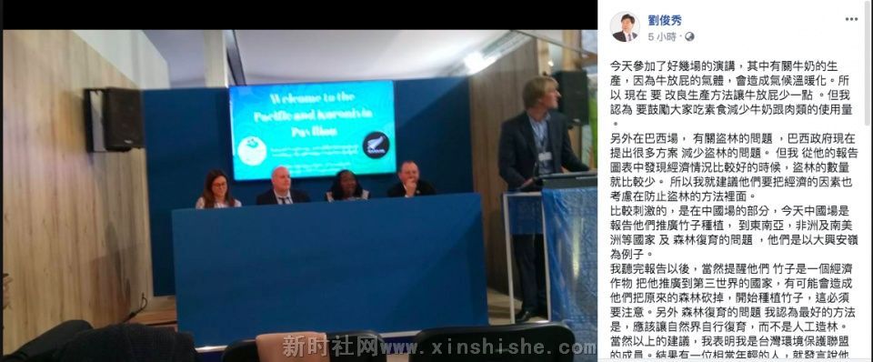据台湾联合新闻网报道,5日,台湾交通大学土木系教授刘俊秀在脸书上发文称,他在联合国气候变迁大会上听到,有一名台湾学生说来自中国台湾,“真的难过”。