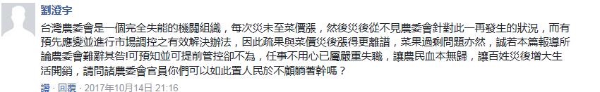 连台湾《中国时报》都发表文章直指农委会管控失当是令台湾蕉金蕉土陷入如坐云霄飞车般境遇的核心问题,更称其实农委会老早就可预防蕉价问题,无奈官员死守着农业自由生产的心态,放任农民无视超种预警,不愿强势介入管理,在眼睁睁看到蕉价崩盘后又不懂得自我检讨。此举完全凸显了农委会没有能力从根本解决问题,只抱着得过且过的消极心态。