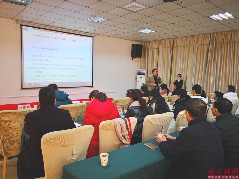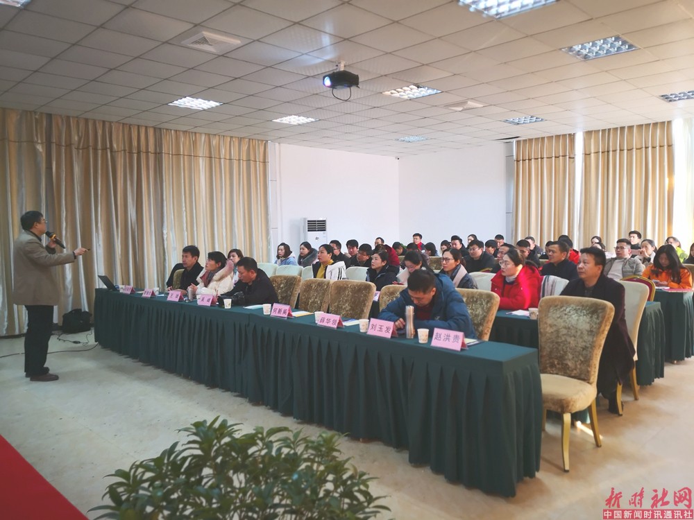 2018年12月14日上午8:40,老乐山研学旅行实践基地专题培训班在河南老乐山景区森林一号生态多功能厅举行,中国成人教育协会常务副秘书长薛华领教授莅临指导。来自驻马店市旅游局、确山县旅游局、市教育局、旅行社、教育机构、基地中层以上管理人员等60余人参加了培训。