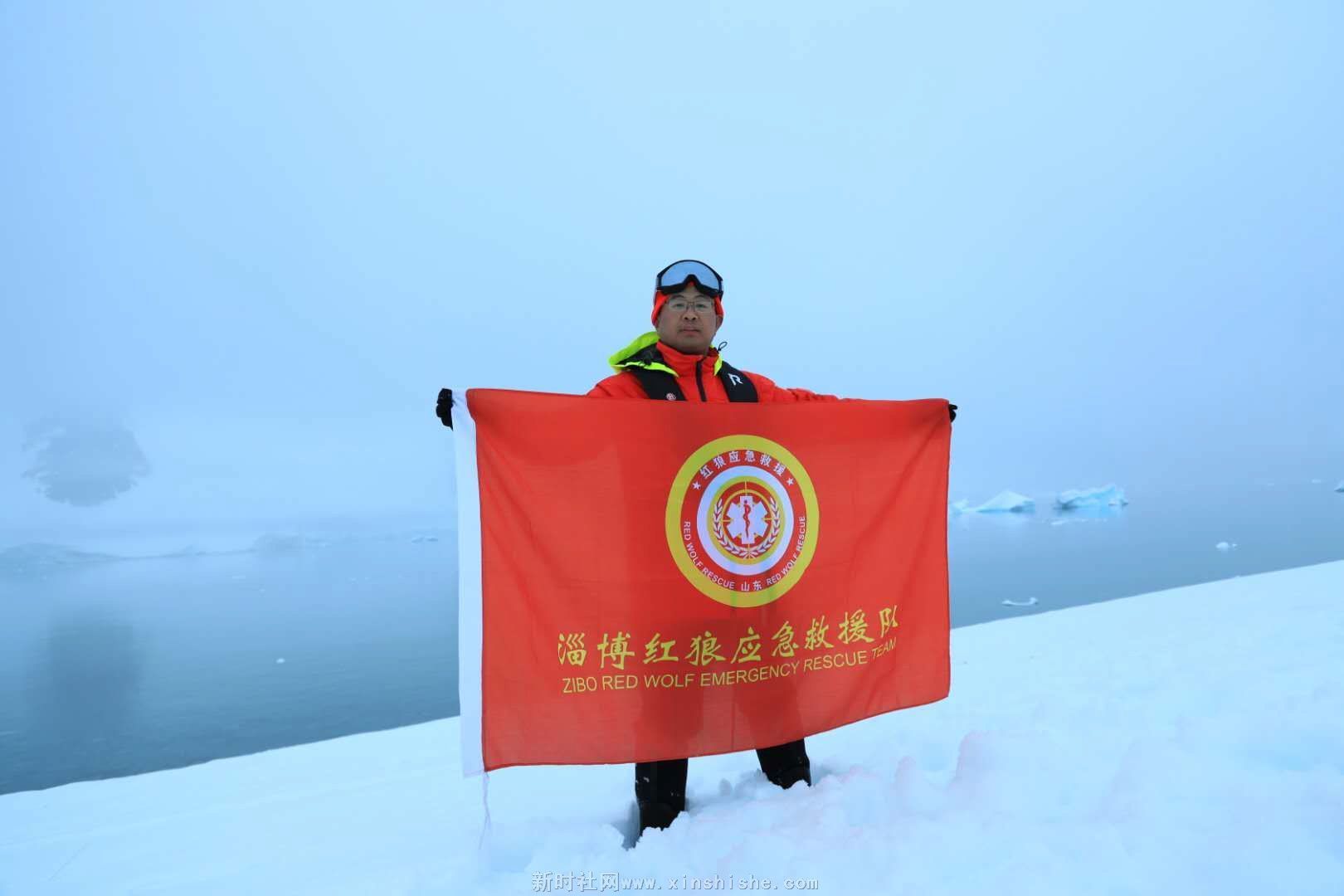感谢朱总从南极发来的祝福,我们淄博红狼应急救援队队旗也在南极亮相了!