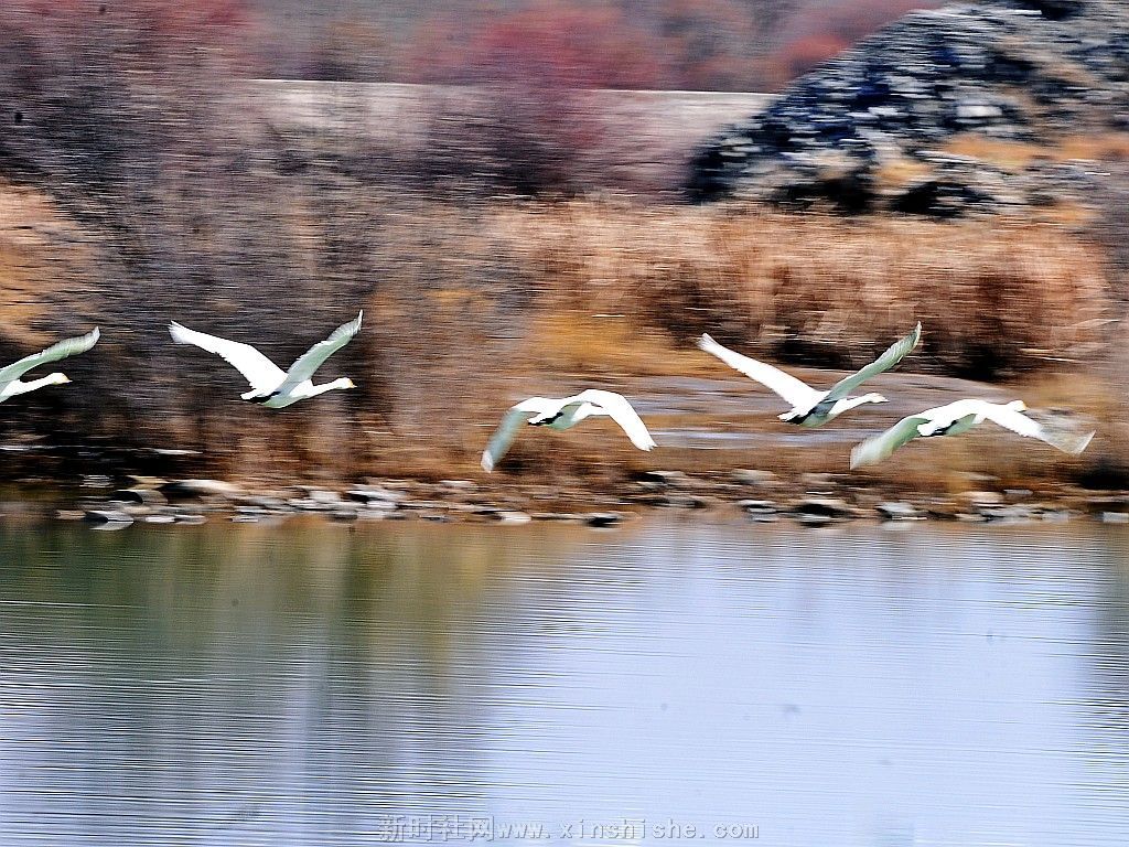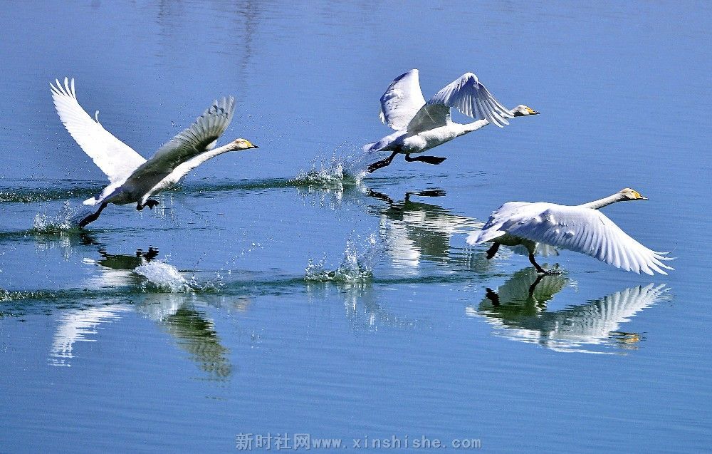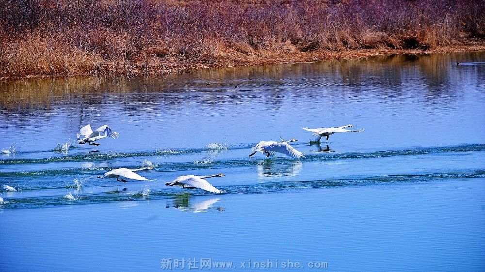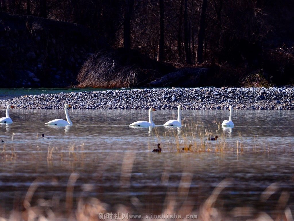 2019年元旦,和朋友相约去贵德黄河边上去拍天鹅,新年第一天,万里晴空,远处的雪山巍峨壮观,碧波荡漾的黄河一路向东流去,温暖的冬日里,在黄河边上越冬的一群群天鹅时而在黄河浅滩觅食,时而在黄河里嬉戏,一群摄影人被美丽的天鹅吸引住了,驻足拍摄。今年的天鹅不是特别怕人,距离摄影师们很近,这可让摄影师们大饱眼福,不停的按动快门拍下天鹅美丽的身姿,一幅幅美丽、和谐的画面被定格下来。
