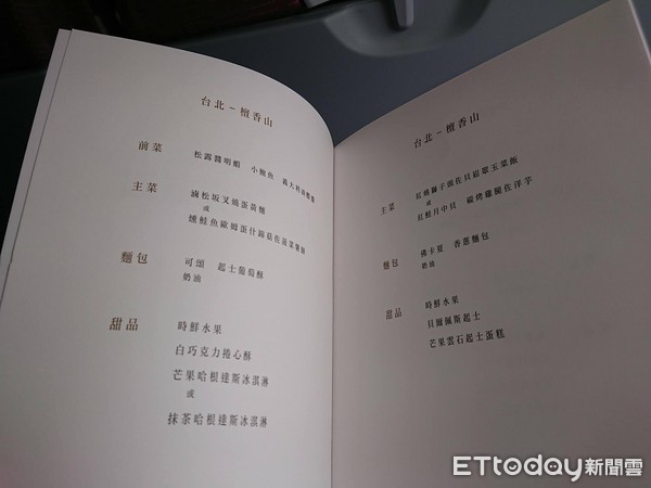 蔡英文出访飞机餐单(图片来源:东森新闻云)