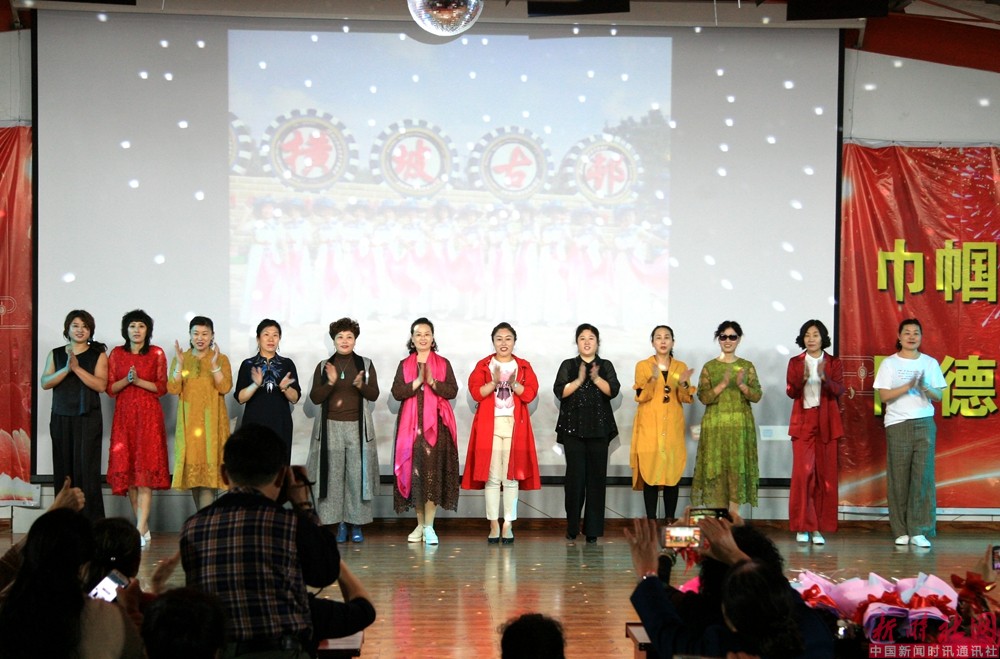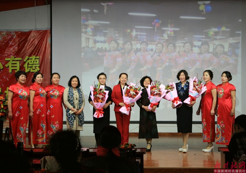 紧接着冀小萍和吉祥队代表众姐妹为柳主席和德善旗袍会的领导赠送了鲜花。