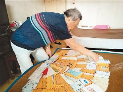 蔡国基在家中整理韩昌鸿寄自台湾的信件。