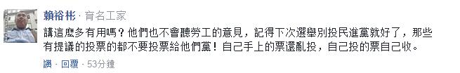有人替劳工鸣不平:他们不会听劳工的意见老板讲的不照做就只能滚了;