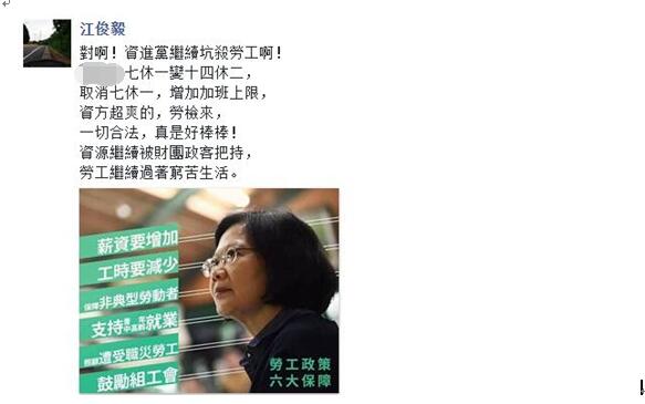这里再给各位讲个知识点:在岛内现行的劳基法中规定劳工每七日中应有二日之休息,其中一日为例假,一日为休息日,但未明说例假应该怎么排,故而早期时有七休一函释,即为两例假应间隔6个工作日,但如征得工会或劳工同意,例假可挪移,后因可连上12天班的弊端遭批;之后蔡英文当局上任,另以新函释废止旧函释,又规定两例假间最长就是6天,硬性规定了一例一休,但没想到这次的修法却又松绑了七休一一例一休每一个修订,都是越修越糟!