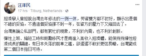 台湾的一例一休近日又出来博版面了,这厮要松绑了!