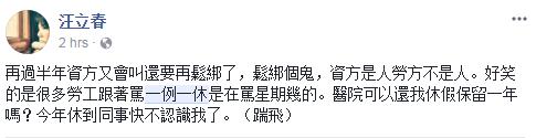 闹了半天这又绕回来了,不仅台湾劳工过劳的问题没有解决,好像还被砍了7天假!难怪有网友觉得赖清德偏向资方了。