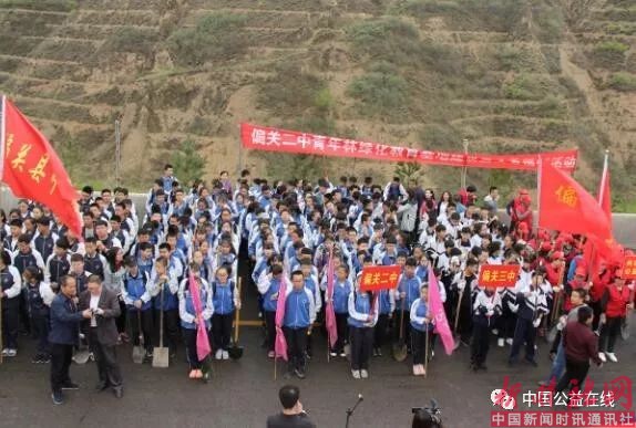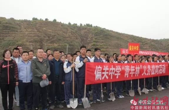 共青团忻州市委书记刘江、偏关县委副书记王文阁为偏关县“青年林”绿化教育基地揭牌拉开了义务植树造林的序幕,各学校校长亲自带队向着山头出发展开了植树大会战。省下乡扶贫文旅集团冲在学生们的前面爬上了最高峰种下了一颗颗爱心树。