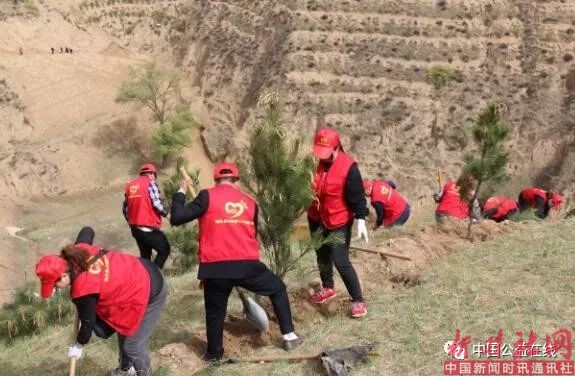 在整个植树大会战山头上最耀眼的穿着红马甲的一支队伍就是偏关兴瑞爱心公益协会,会长王兴军带领全体志愿者两人一组认真的种下了爱心树,志愿者们的爱心布满了山头,成为“青年林”教育基地上亮丽的风景线。副会长吕永勤及队友们捡拾散落在植树阵地上的垃圾,小小的举动为偏关植树绿化环境奉献了一份爱心。