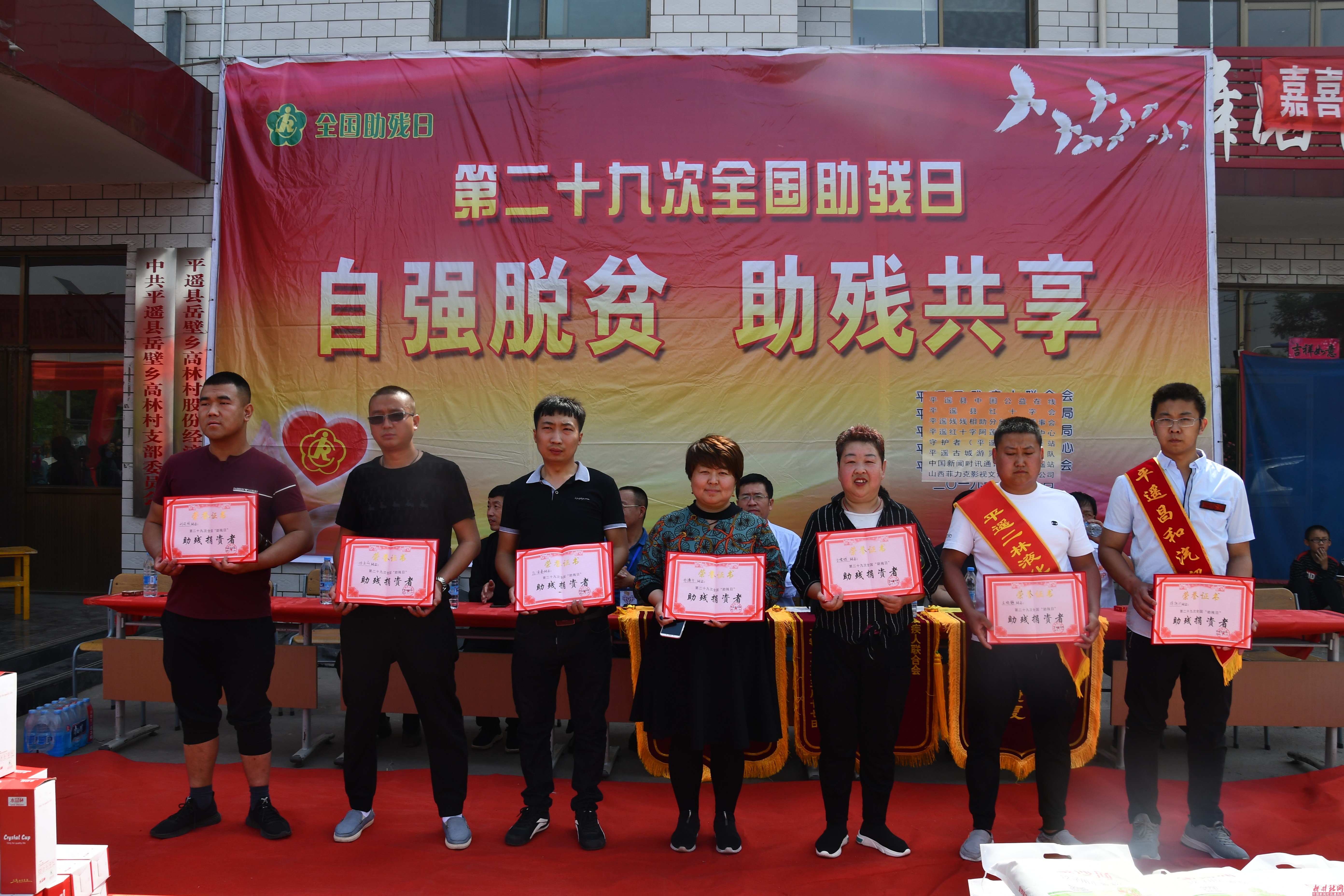 平遥站采编部讯:5月19号是第29个全国助残日,在助残日到来之际,高林村残残相助扶贫董事会,中国公益在线平遥工作站和我县助残爱心人士,在高林村举行为残疾人献爱心活动。