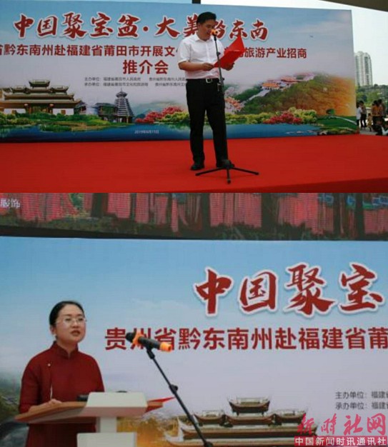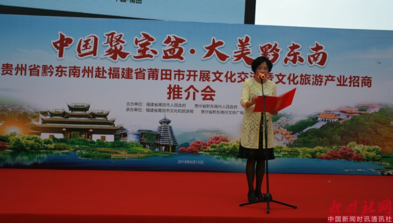 推介会现场,黔东南州州委常委、州人民政府副州长郑秀全热情地向莆田人民发出邀请,首次正式对外公布贵州省“山地公园省·多彩贵州风”2019避暑度假旅游活动的优惠政策,并从“民族文化和自然生态”两个角度介绍了黔东南州山水钟灵毓秀、人文荟萃。并表示:两地交流合作日益紧密,以福建为主的华东地区是外省进入我州旅游人数最多的地区之一,黔东南已经成为了福建企业家投资兴业的一方热土和黔东南游客观光游览的一片胜地。举办这次推介活动,是我们学习莆田开放创新精神,进一步解放思想,宣传推介黔东南的一次难得机遇。也希望借此机会,加快推动两地共同搭建企业发展合作平台,打造省际旅游精品线路,进一步实现资源互补、市场互建、合作共赢,共同谱写两地交流合作新篇章。