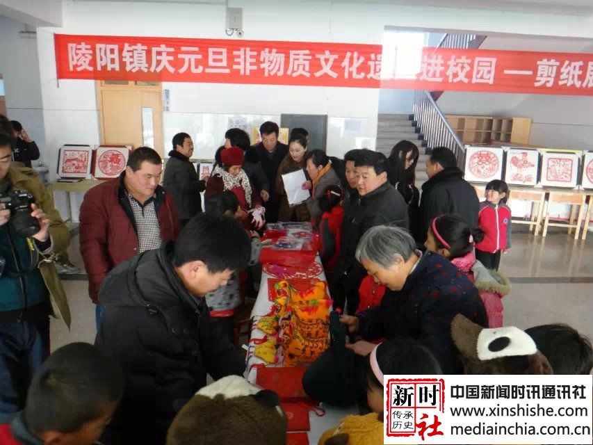 12月29日下午,为迎接新的一年的到来,在莒县陵阳镇文化站陈站长的组织之下“陵阳镇庆元旦非物质文化进校园--剪纸艺术展”在陵阳镇中心小学教学楼一楼大厅举行。 数十名剪纸艺术家给孩子们带来了100多幅反映“富强、民主、文明、和谐,自由、平等、公正、法治,爱国、敬业、诚信、友善”的社会主义核心价值观内涵的剪纸作品进行展示,并且带领孩子们学习剪纸艺术,吸引了数百名师生驻足参观。 本社特约记者 厉吉庆 文/摄