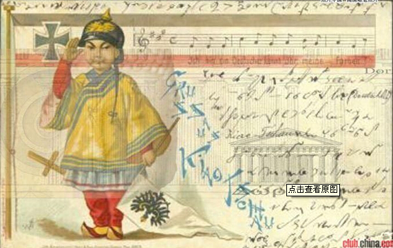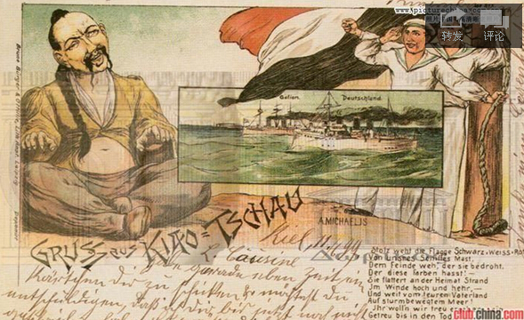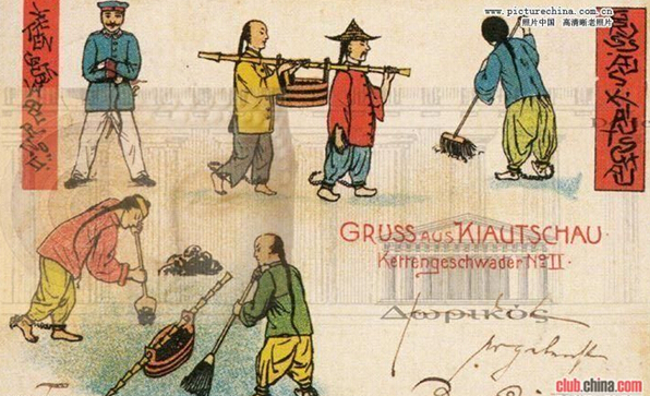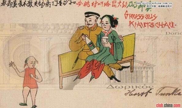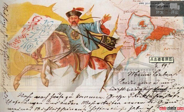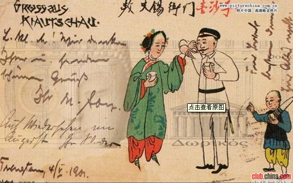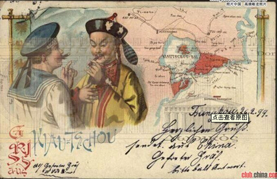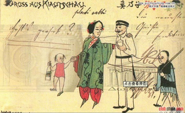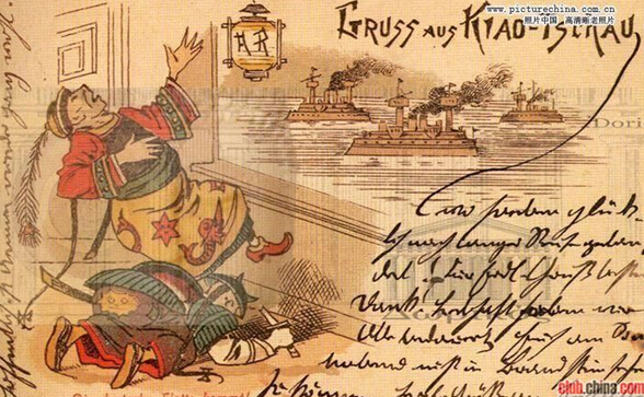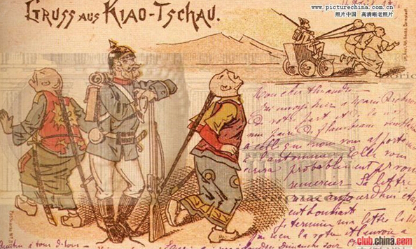 1897年德国侵占青岛后发行了为数众多的丑化、辱华和粉饰侵略的漫画明信片。