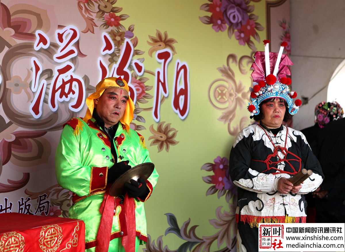 又逢新佳节,在每年的正月里,当地为了宏扬民族传统文化及传承非遗文化,政府都要组织各乡镇的民间老艺人对传统文化的演艺,一方面通过演出让这种传统一代代传承下去,另一方面也给群众带来新春的节日气氛。“汾阳地秧歌”历史久远,具有浓郁的乡土气息,对于研究黄河流域农耕文化,探究当地汉族劳动敏锐娱神崇祀等民俗活动有着重要的价值。作为有鲜明地方特色的汉族民间舞蹈,汾阳地秧歌载入《中国民间舞蹈集成》。今年的秧歌酹演主要集中为文场表演,由于文场以唱为主,不需要多大的场地,在舞台上表演更能让台下的观众看的清,听的真,并且利用舞台设备,将唱词也显示在了LED屏上,让一些听不懂方言的也能看得懂了。同时演艺的内容也是新式多样,有古典曲目,还有现代曲目,所以就出现了穿传统服饰和现代服饰的类型,汾阳的这种磕板秧歌以前由于妇女地位的限制,多为男扮女装,现在为了表现古老的特色,仍有采用这种方式的表演,为节目增加特珠效果。