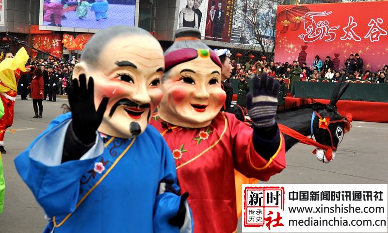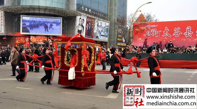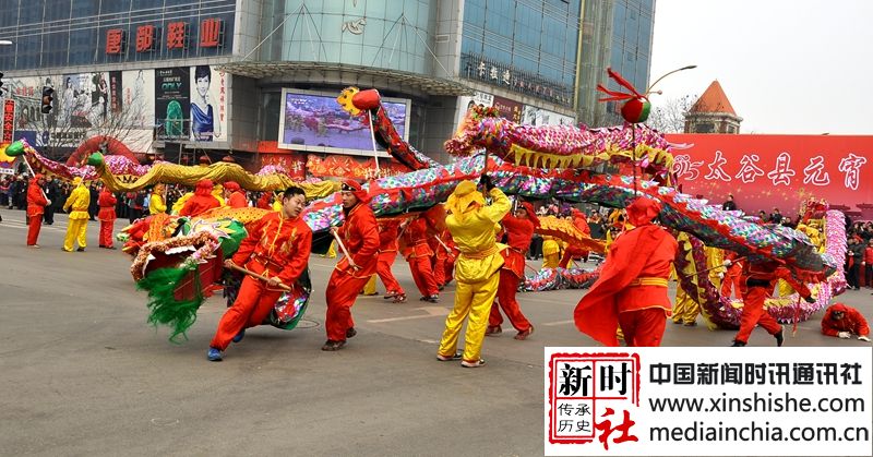 开心的锣鼓敲起来,喜庆的秧歌扭起来,飞腾的巨龙舞起来,欢乐的元宵闹起来。农历正月十五上午九时激情飞扬的威风锣鼓拉开了山西太谷元宵节文艺表演大幕,国际摄影协会平遥俱乐部,吕梁俱乐部应太谷摄影协会邀请出席此次活动,装饰精彩的花车,与时俱进的标语,喧天欢乐的锣鼓,喜气洋洋的笑脸......烘托出一片歌舞盛世祈福丰年的热闹气氛。颤颤抖抖的铁棍,技艺精湛的高跷,高超的狮子滚绣球及二龙戏珠,九风朝阳.划旱船.秧歌表演.二鬼摔跤.跑驴.猪八戒背媳妇.抬花轿.饱含乡土气息的民俗标语等节目让观众眼花缭乱,如痴如醉,大饱眼福。更吸引的摄影爱好者长枪短跑咔擦响个不停。山西通联站:杨文阁报道