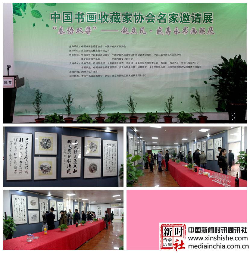 2105年03月15日,由中国书画收藏家协会主办,北京连城文化发展有限公司承办,中国美协中国重彩画研究会、中国少数民族文物保护协会艺术研究院、中国文联书画艺术交流中心、中国古琴文化研究会、中央电视台书画院共同协办的《中国书画收藏家协会名家邀请展之“春语双馨”——赵立凡、盛寿永书画联展》,于中国书画收藏家协会新址如期举办。