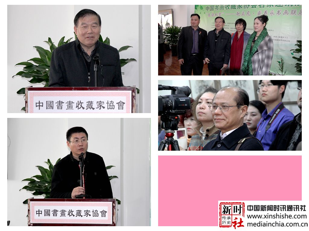 本次展览得到:香港卫视、市场信息报、《新晋商》杂志、央视网、商务部世界展览中心网、书画网一书画天下、央视《收藏天下》、书画频道、中国书画收藏家联盟网、美术中国杂志社、旭麟珠宝、卡沃户外俱乐部及众多企业和新闻媒体的大力支持,本次画展由中国古琴文化研究会秘书长吴寒先生主持,中国书画收藏家协会王永茂副会长、李刚副会长、崔陟秘书长、中国美协工笔重彩研究会会长蒋彩萍女士、中国古陶瓷研究所所长索宗剑先生、中国林业美术家协会主席王剑兰女士、香港卫视张华梁先生、世界展览中心网庞龙先生,及来自社会各界的领导和重要嘉宾出席了本次活动,并做了重要讲话,对本次参展的赵立凡·盛寿永两位艺术家的作品给予了较高的评价。