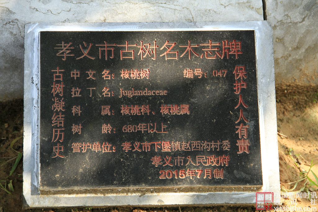 近日来到享有“汾州核桃树龄王”美称的核桃古树下,一览了古树的魅影,该树位于山西省孝义市下堡镇赵西沟村,栽植于明朝永乐年间。至今已有680年的春秋,历经风霜雪雨,岁月沧桑依然巍峨屹立。树高26米,主干周长4.4米,冠幅东西长26米,南北长27米,枝繁叶茂,苍劲挺拔,就这样古老的树,每年仍盛产核桃二三百斤。