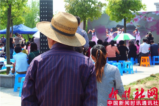 艳阳高照,精彩纷呈的节目吸引了戴草帽的大爷驻足观看。(中国文明网记者 李雪芹 摄)