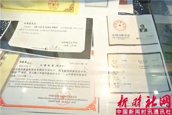 “傅家路村乡风文明馆”展览本土诗人沈建基资料。(中国文明网记者 李雪芹 摄)