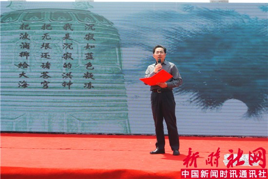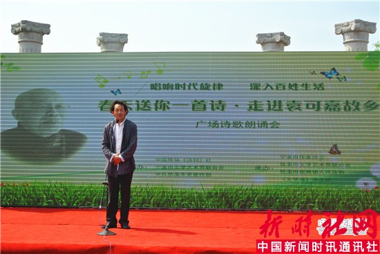 慈溪市文联主席方向明领诵袁可嘉诗歌《沉钟》赢得叫好声一片。(中国文明网记者 李雪芹 摄)
