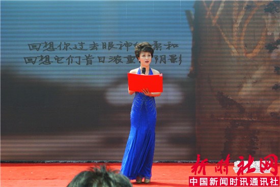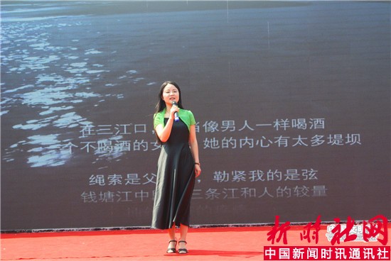 女诗人、陈之佛艺术馆馆长张巧慧在朗诵自己的诗歌《三江口抒怀》。(中国文明网记者 李雪芹 摄)