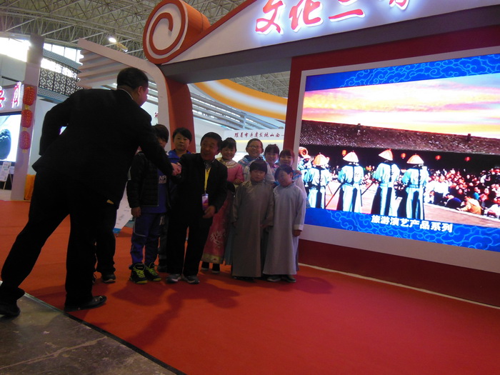 第十届北京文博会于10月29日11月1日一如既往地在北京市中国国际展览中心举办,本届文博会以“推动文化繁荣促进融合创新”为主题。平遥龙在天皮影艺术团自2012年3月恢复起山西省平遥古城失传50年之久的皮影戏演出后,身高一米二八的艺术团团长白长茂为来自全国各地的30多位身高不足一米三五的袖珍残疾人解决了很有尊严的就业问题,为中央所提出2020年全民达小康做出了卓越的贡献。为此,白长茂个人也荣获了山西省人民政府授予的全国为数不多的残疾人先进助残个人称号。传统皮影艺术在平遥古城北门里东80米处的平遥龙在天皮影戏馆每天常态化的展演活动,不仅丰富了世界文化遗产地——平遥古城的旅游文化内涵,而且每年在各届北京文博会上都有平遥龙在天皮影艺术团演职人员展演民族优秀传统皮影艺术的身影。在本届文博会活动的第一天,中共中央委员、北京文博会组委会主席、国家新闻出版广电总局局长蔡赴朝和北京市的有关领导参观艺术团袖珍演员们皮影工艺品的制作和皮影艺术表演,并对袖珍演职人员三年磨一剑般的精湛皮影艺术给予高度的评价!