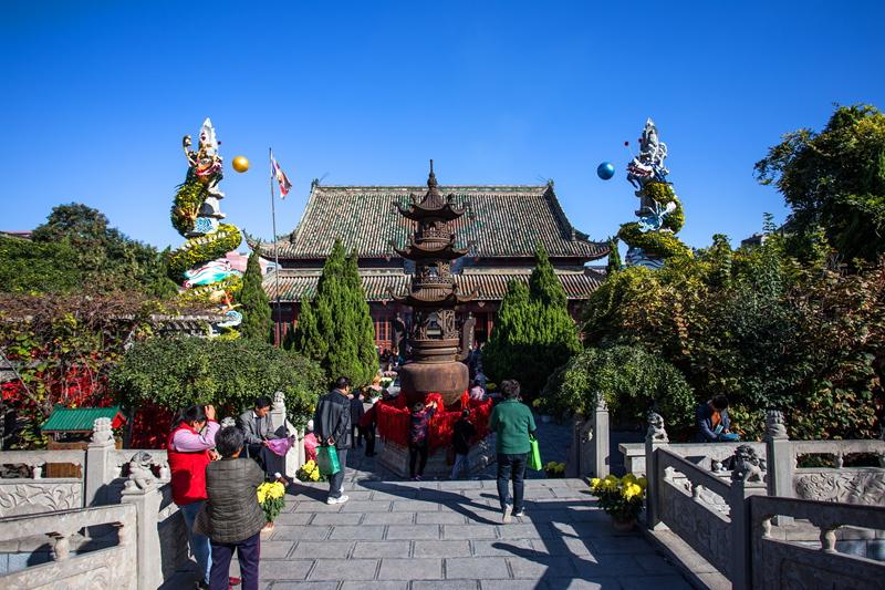 大相国寺位于开封闹市中心的自由路西段,是我国著名的佛教古刹。千百年来,许多神奇的传说和戏剧、小说的喧染,使其驰名中外,更有相公相婆、千手千眼观音、鲁深倒拔垂杨柳的故事,使它更具有传奇色彩。