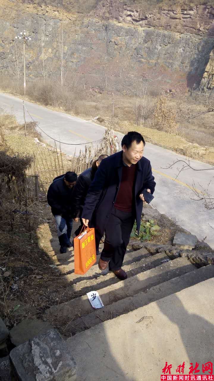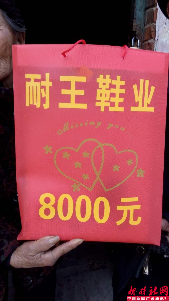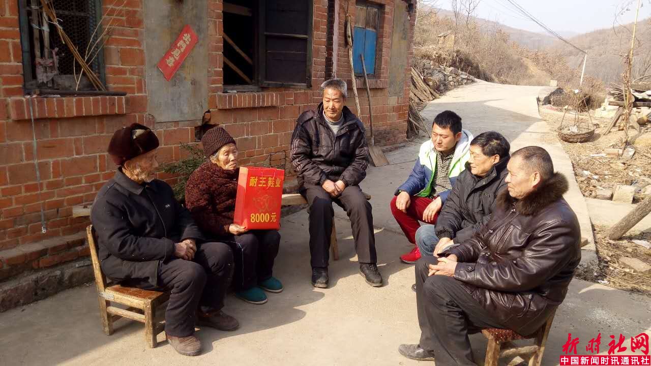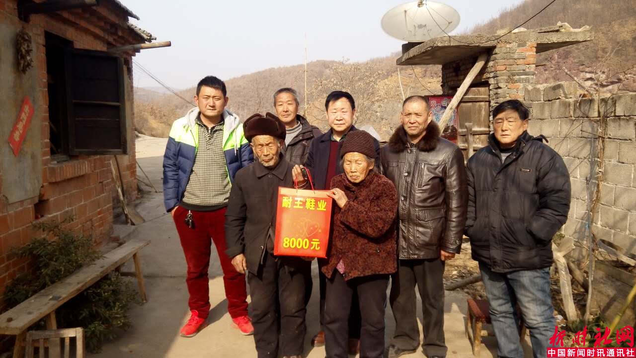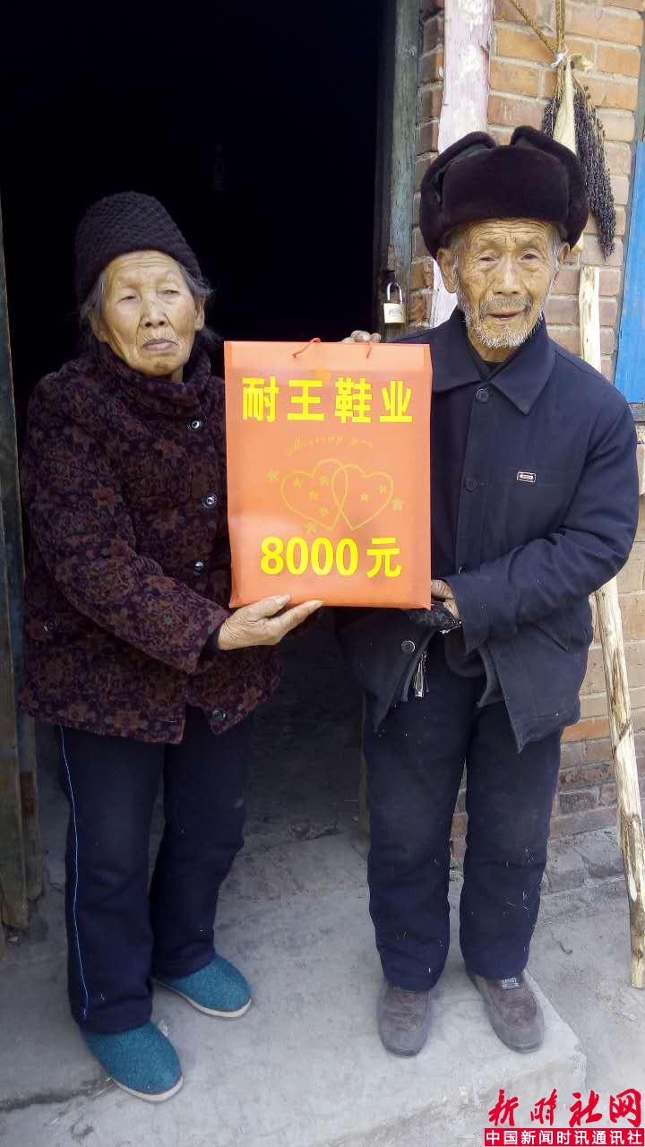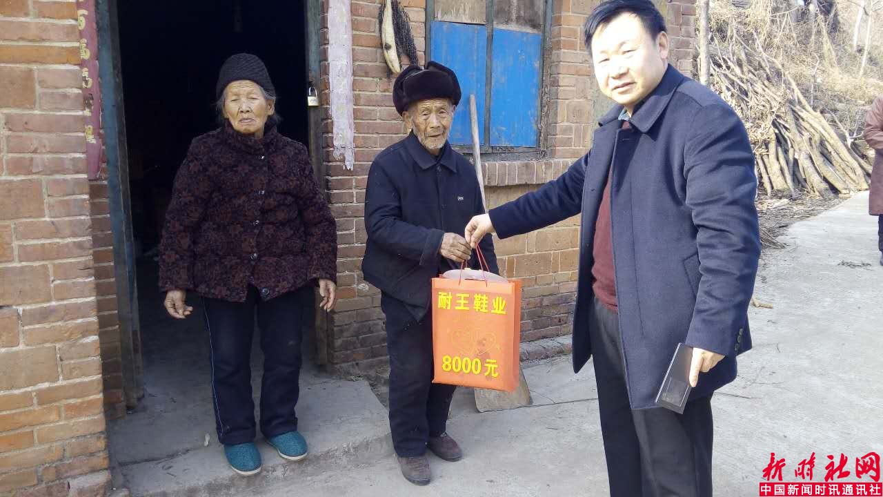 2016年1月8日,耐王鞋业有限责任公司副总李国政代表公司刘秀亭总经理暨公司领导与各县客户,来到鲁山县赵村乡国贝石村杨保卫家,将耐王鞋业公司与客户捐献的8000元爱心捐款交予杨保卫的父亲。