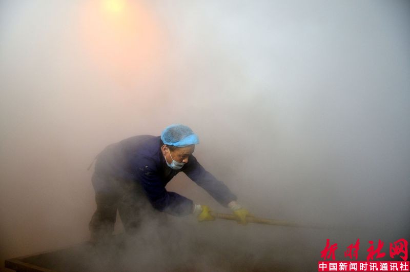 夏伏晒、冬捞冰、贮陈老熟,老陈醋陈酿质量取决于色、香、味三要素,三要素的形成除发酵工艺和原料外,还与陈酿后熟有关。就是将淋好的新醋经过夏日曝晒、冬季捞冰,经过10个月到一年时间,使醋浓缩到1/2或更少容量时,方可装瓶出售,才称得上老陈醋。