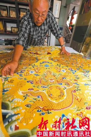 南通70岁的缂丝艺术传人王玉祥出生在纺织世家,现为宣和缂丝研制所所长,从事缂丝制作30多年,在传承缂丝技艺过程中大胆创新。2010年,由他参与设计制作的汇集七种缂丝工艺于一身的“鸾凤双栖牡丹”被首都博物馆收藏,这是首博首次收藏当代成衣藏品。
