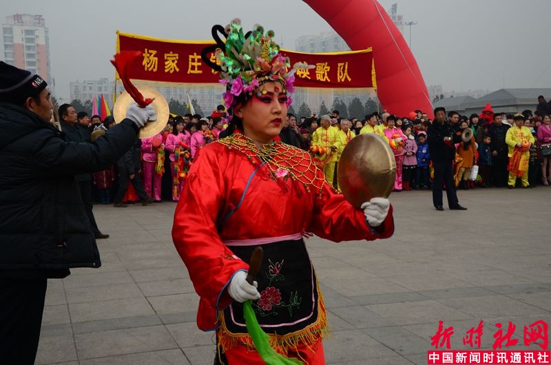 汾阳地秧歌的活动时间主要集中在春节期间,表演道具与乐器主要是花棒、小锣、腰鼓,另有大锣、铙、钹、亮锣为外围烘托气氛的伴奏乐器。