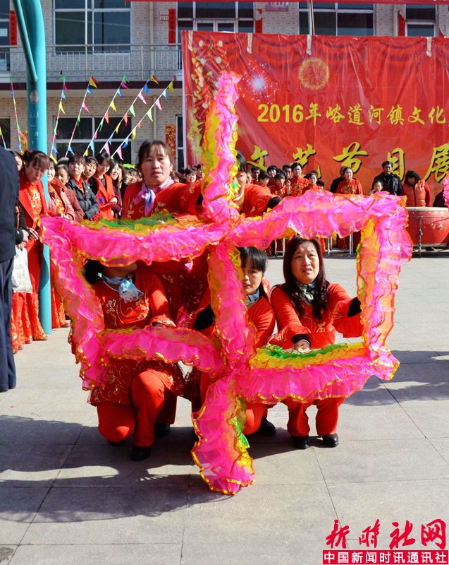 (本社记者:赵志伟讯)2月28日上午,峪道河镇的文化大院内,一派春意盎然,锣鼓喧天景象,由镇党委、镇政府主办,镇文化站承办的“2016文艺节目展演”正式拉开帷幕。来自该镇各村的20多支舞蹈队给乡亲们献上了一场健康向上、丰富多彩的文艺节目!为2016年的春节增添了一份别样的色彩。