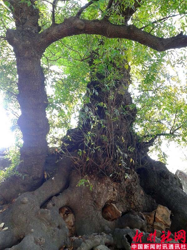 小村的村头和村中,有两株虬枝盘错的黄连树,树木古老,树龄逾千年,刻满经年的沧桑,已被有关部门列入古树名录加以保护。古树裸露的树根如坚实的臂膀和凸起的胸肌,紧紧地贴着每一寸土地,仿佛要把身体与大地融在一起。