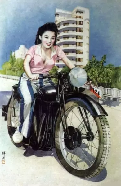 杭穉英所绘美女骑摩托车