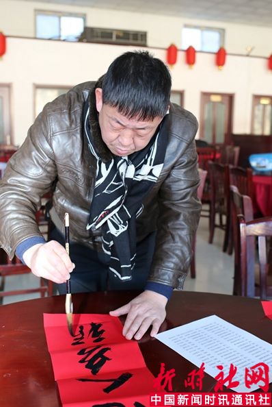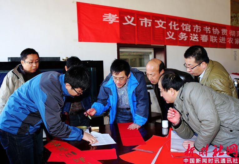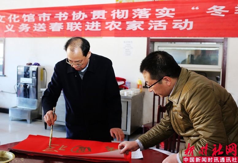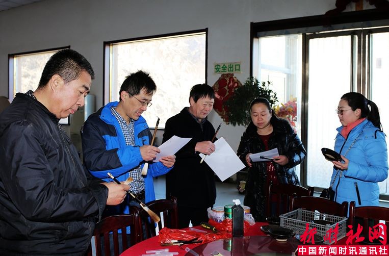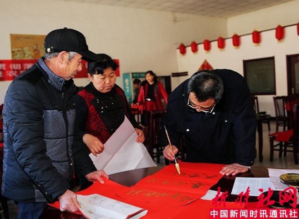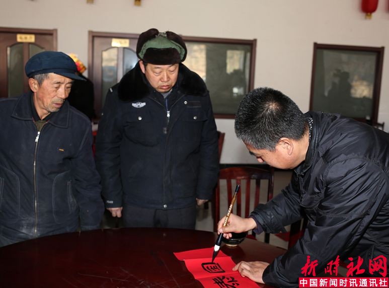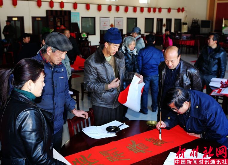 元月26日,主题为贯彻落实“冬季行动”义务送春联进农家活动在孝义市柱濮镇王家庄村拉开了帷幕。孝义市文化馆邀请我市书协12名书法家,为王家庄村村民送去了春联和新春祝福。书写现场红纸翻飞,墨香四溢,洋溢着欢乐祥和的节日气氛。书法家们个个挥毫泼墨,把对农民朋友的深情厚谊融入笔墨,将精心书写的六百余幅春联送到农民群众手中,为该村群众送上了一份浓浓的节日祝福。(蒋建林)