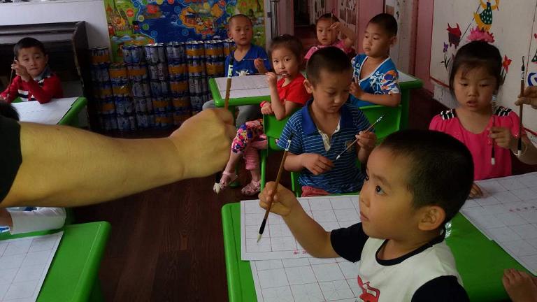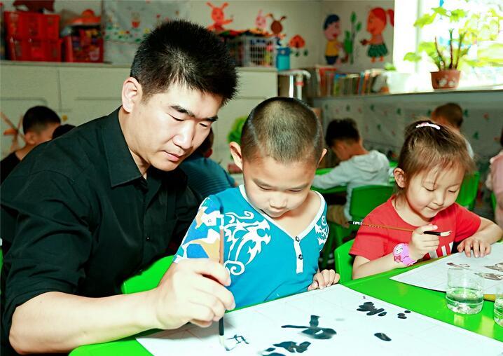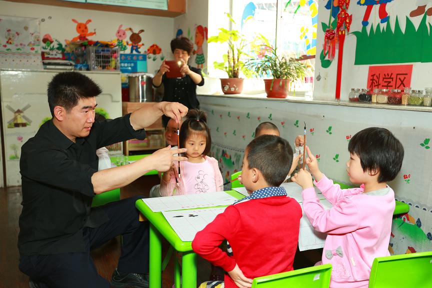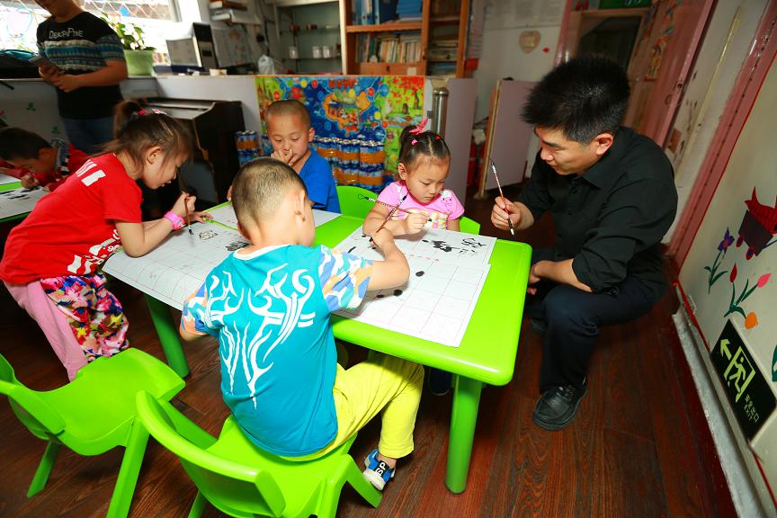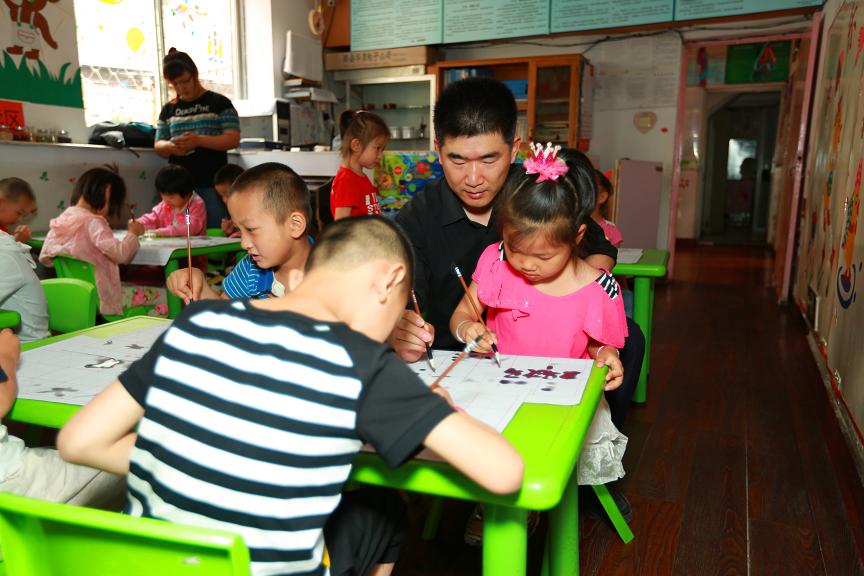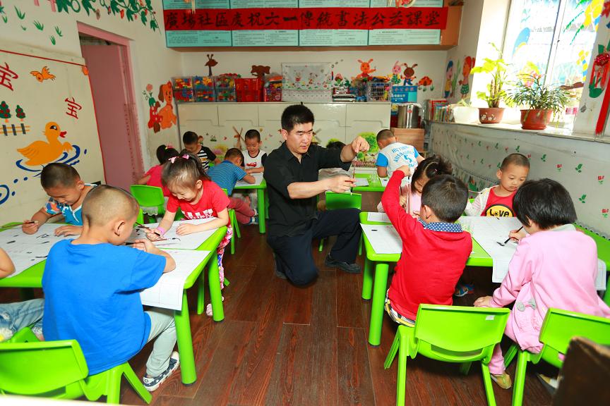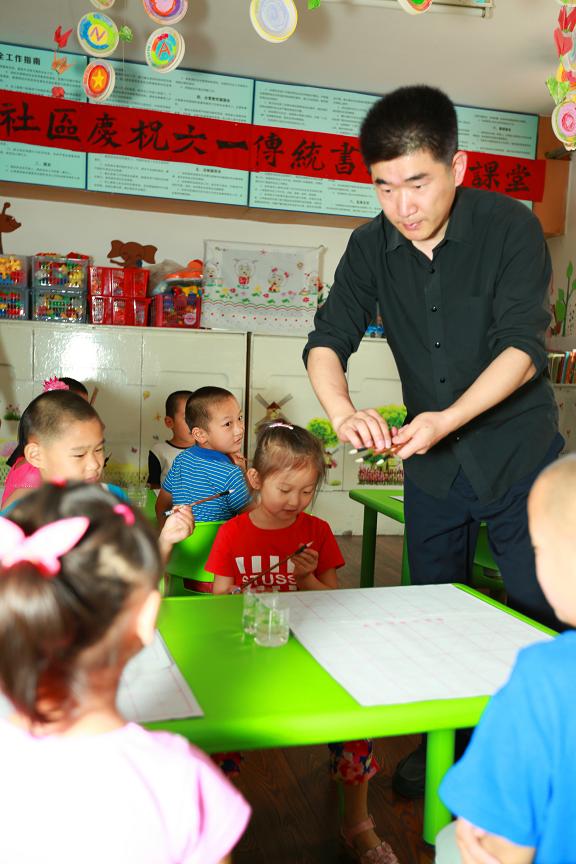 “六一”国际儿童节来临,为了让辖区外来务工人员的孩子们度过一个快乐而又有意义的节日, 大连市沙河口区马栏街道广场社区邀请当代书法家何涛,进入马栏一幼儿园学龄前班课堂,为学龄前班儿童开设了公益基础书法讲习课程。所有的书法学习用具教材等,都是由广场社区无偿提供给小朋友们使用。