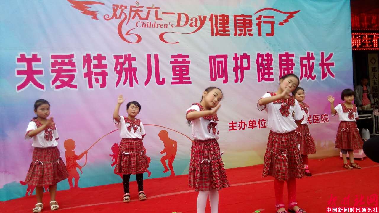 体检结束后,医院领导给全体孩子们每人发放一份节日礼品。 体检开始前,可爱的孩子们还为全院医护人员、部分家长、周围市民表演了手语、舞蹈、诗朗诵等精彩的文艺节目。
