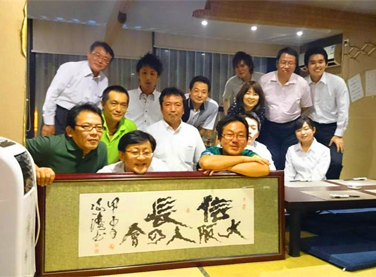 「大阪人会」是和大连的「浪花会」合并而组成的,日本大阪府出身的日本人,以及在大阪学习、工作、生活过的中国人和日本人的文化生活交流会。每月在「日本料理信长」举行一次晚宴,大家在一起回顾在大阪的一些生活回忆,在中国大连的生活工作体会等等,很好的成为了一个中日民间文化交流、理解、学习的平台。留学日本的书法家 何涛 就是在大阪留学工作生活过多年,回国后参加了「大阪人会」的交流,并为交流会题字,以此支持交流会的发展,希望为中两国民间友好做出贡献。