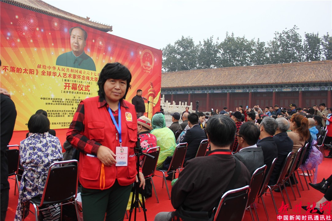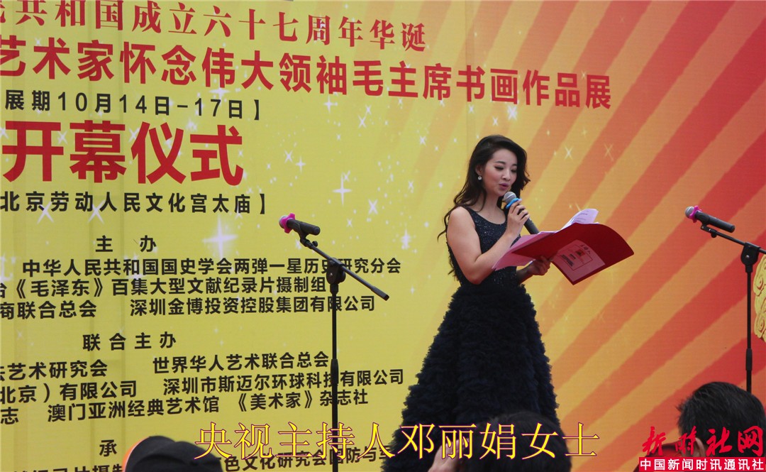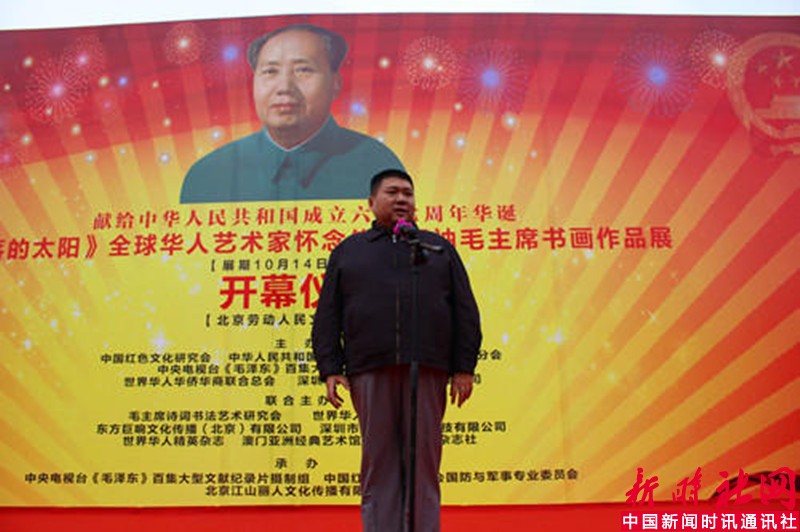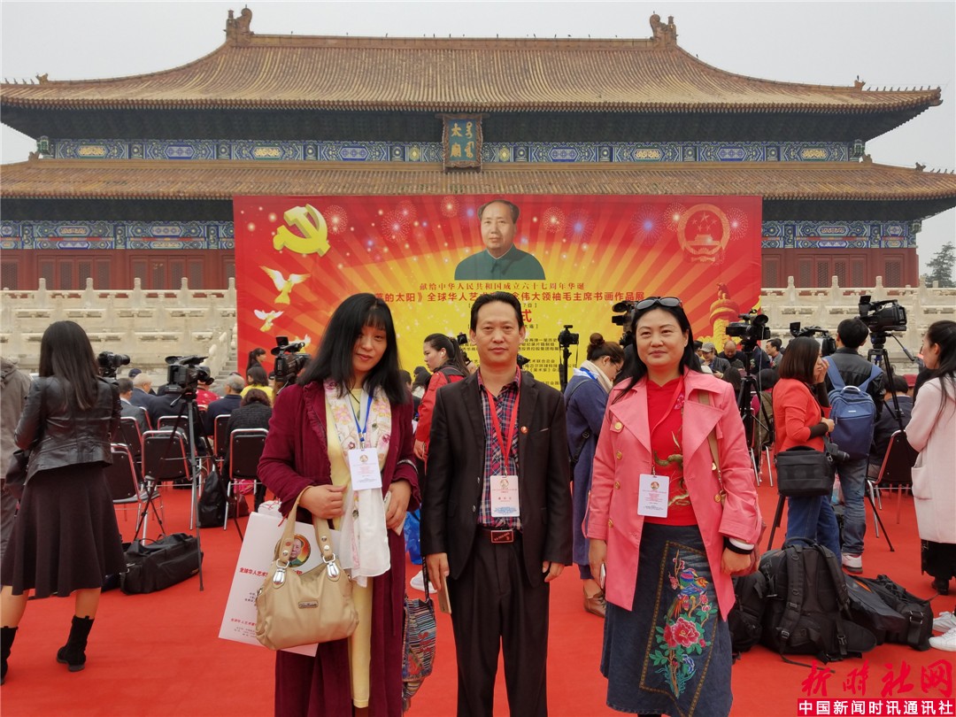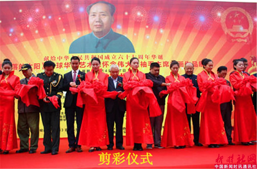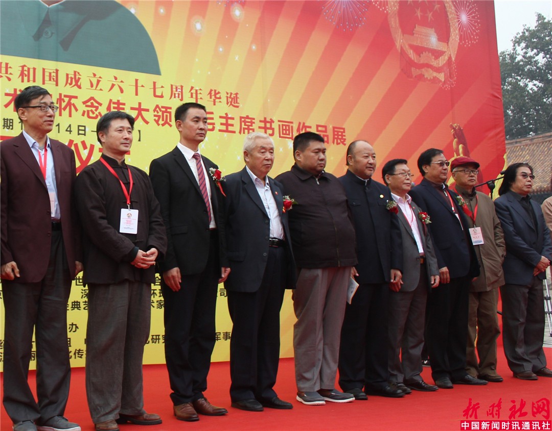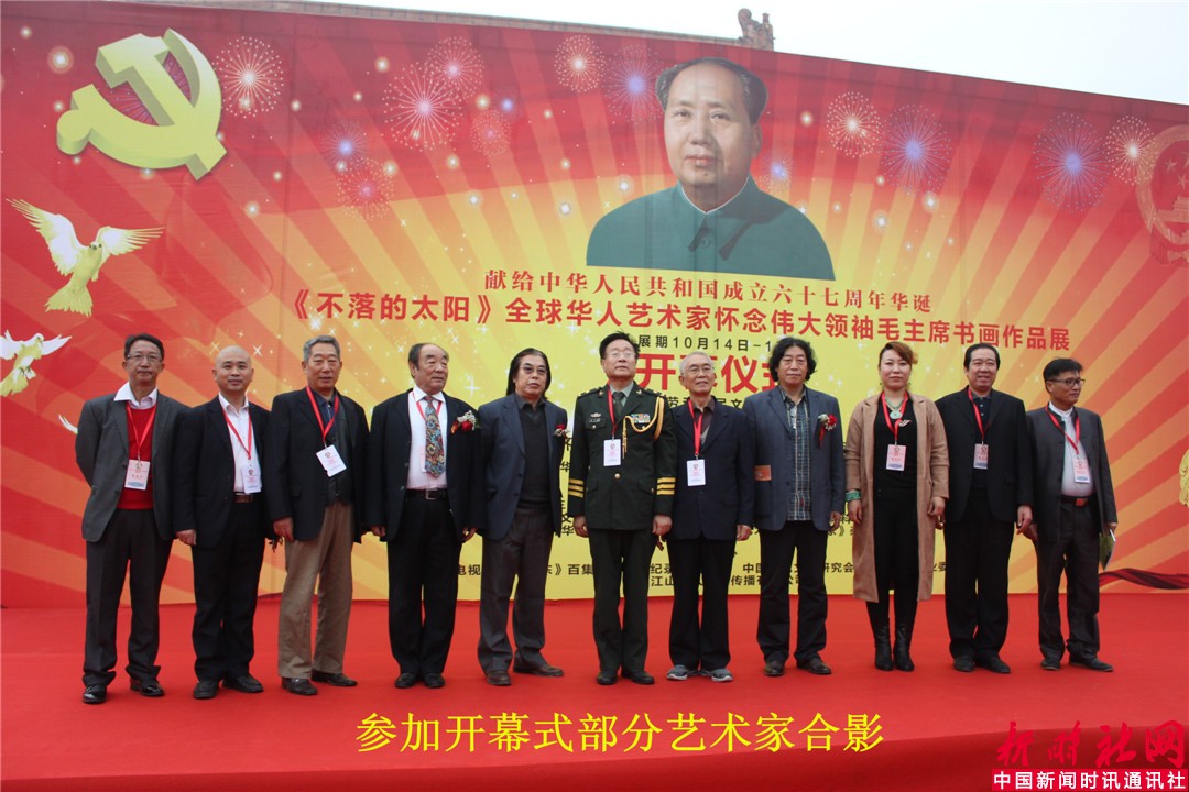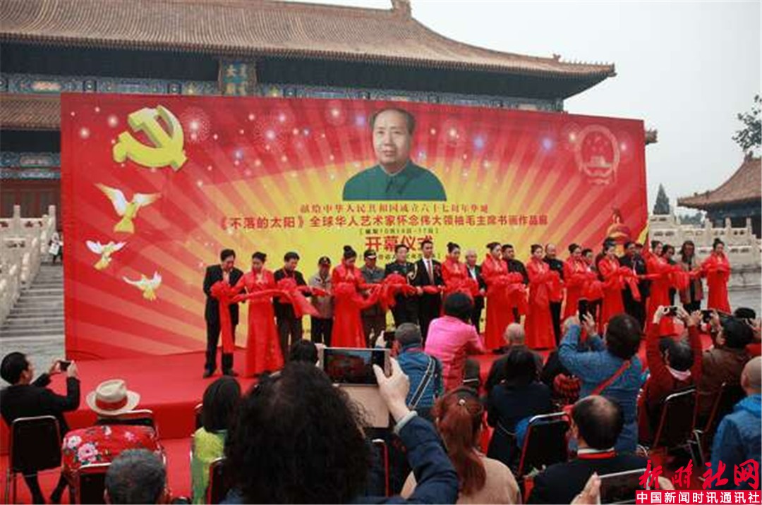 中国新闻时讯通讯社/新时社网记者宋洁报道:为纪念中国共产党成立九十五周年和中华人民共和国成立六十七周年,《不落的太阳》全球华人艺术家怀念伟大领袖毛主席书画作品展,于2016年10月15日上午在北京劳动人民文化宫太庙隆重举行了开幕仪式。