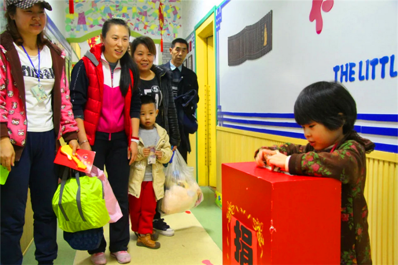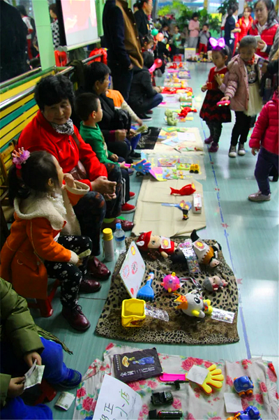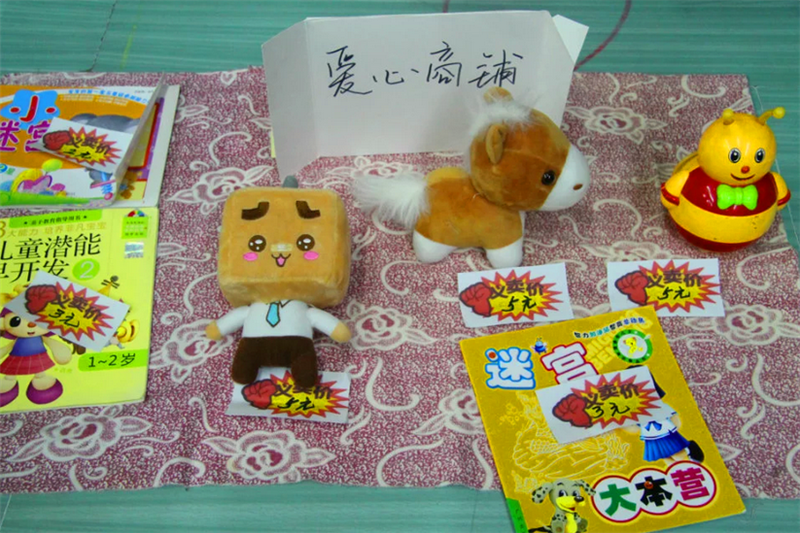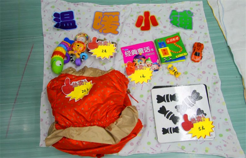 孩子们从家中带来了他们或喜爱或闲置的玩具、图书、文具、衣物以及个人创作的美工作品等,到幼儿园搭起了“小小跳蚤市场”。在物品上孩子们自己贴上价格标签,自己做起“小生意”,从摊位的标牌设计到“商品”的层次摆放都是自己发挥的创意。“市场”上不时传来响亮的叫卖声,孩子们俨然成了一个个小小买卖行家。孩子们将此次活动所得款项全部捐给慈善总会。孩子们的力量可能很小,但是可以尽其所能让和自己一样大的贫困弱势儿童感觉到温暖,增加他们走出贫穷的勇气和信心,让他们不再感到无望和孤独!希望能为贫困地区的孩子们献出一点自己的力量,实现他们的上学梦想。