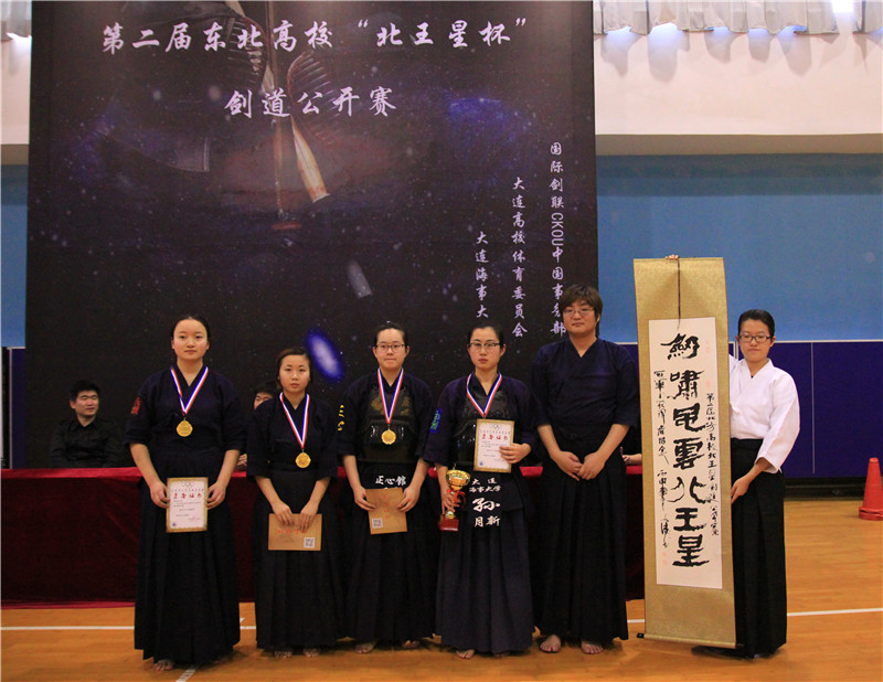 由「国际剑联CKOU中国事务部」「大连市高校体育委员会」主办,「大连海事大学」承办的「第二届东北高校"北王星杯"剑道公开赛」在大连海事大学举行,本项赛事是专门以在校大学生为对象而举办的剑道比赛,本次参赛学校有:大连海事大学、大连理工大学、大连医科大学、大连民族大学、大连科技大学、东软信息技术学院、大连工业大学、沈阳理工大学、沈阳航空航天大学、华北电力大学、北京服装大学、北京中医药大学、中国医科大学、东北大学、延边大学,15所高校剑道爱好者们齐聚于此,共同切磋剑道技艺。最终,海事分获得女子和男子个人赛冠军,沈阳高校联队取得女子团体冠军,女子团体亚军为工业海事联队,女团季军为民医海联队。男团冠军为理工北服联队,亚军为沈阳高校联队。其中,两名男子冠军和女子冠军,由当代书法家 何涛 先生无偿捐赠墨宝作为奖品,颁发给了三位剑道公开赛冠军。